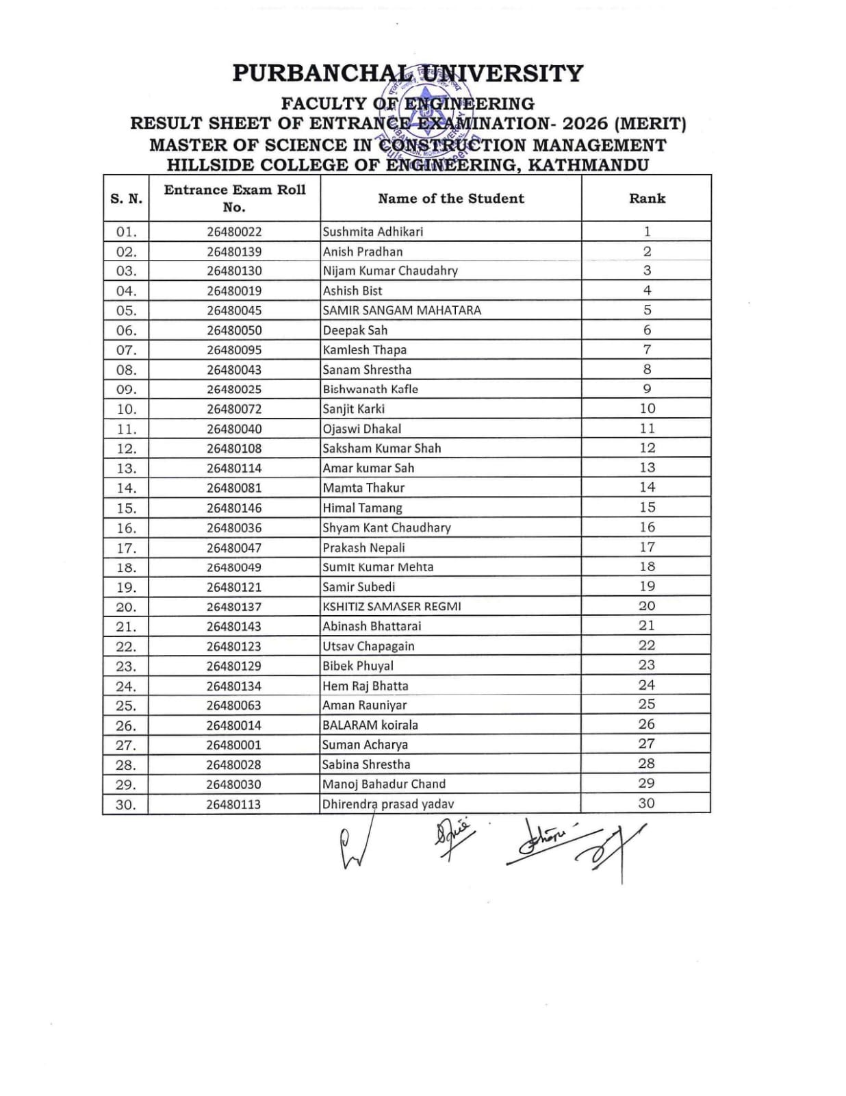 Masters' Admission Fifth list 2024