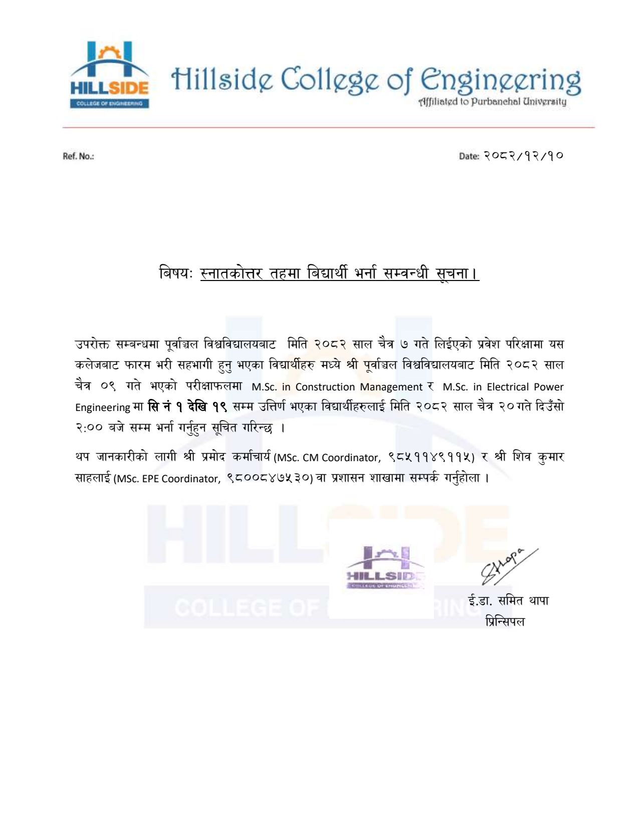 Message From Principal